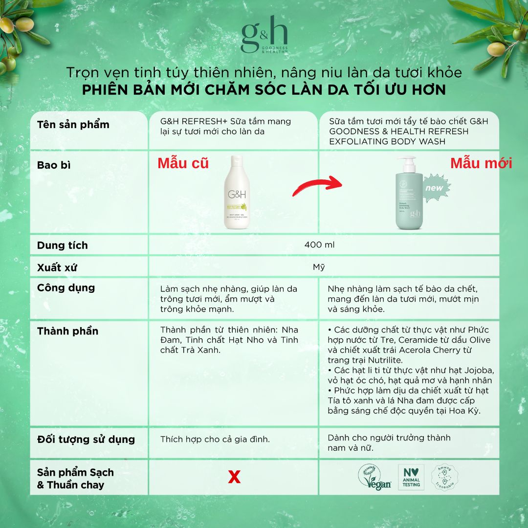 Sữa tắm, tẩy tế bào chết toàn thân G&H Goodness & Health Refresh